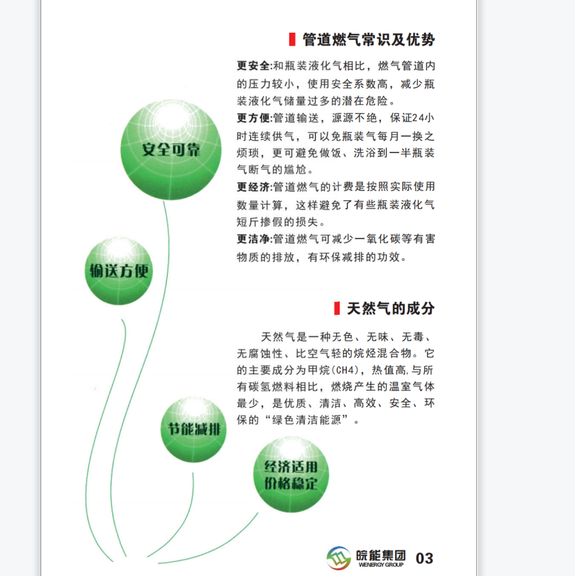 1、產品質量:在氣源供應正常情況下,天然氣民用灶前壓力不低于2000Pa。工業、商業供氣壓力:按正常生產,滿足工藝壓力要求。天然氣熱值標準:大于8000大卡/m3。