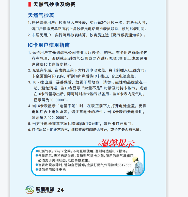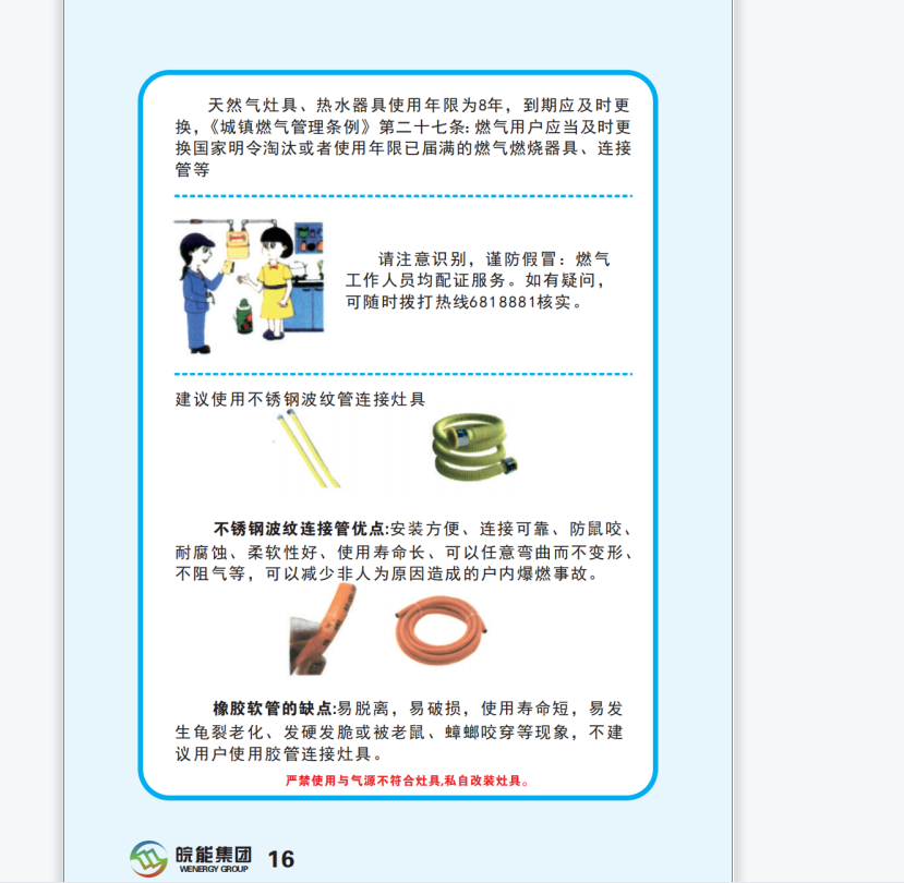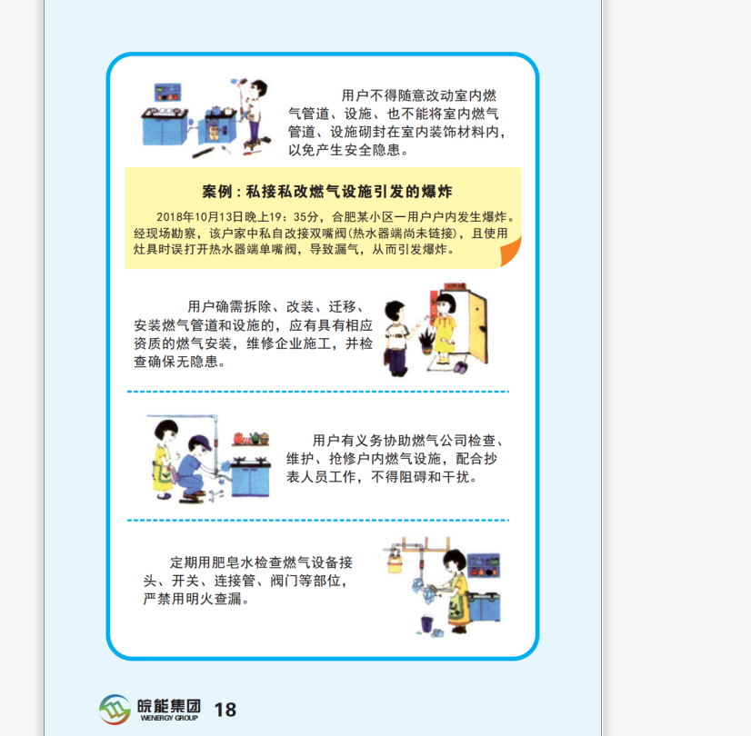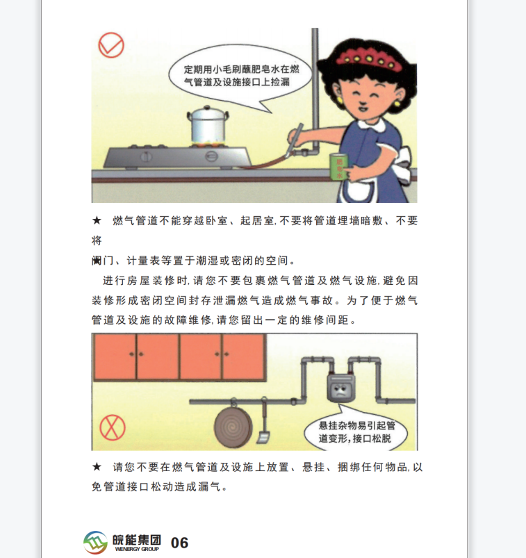 5、安全檢查:為居民用戶提供每年二次的入戶安全檢查,為工商業用戶提供每半年一次的入戶安檢,并對用戶進行安全宣傳和教育。