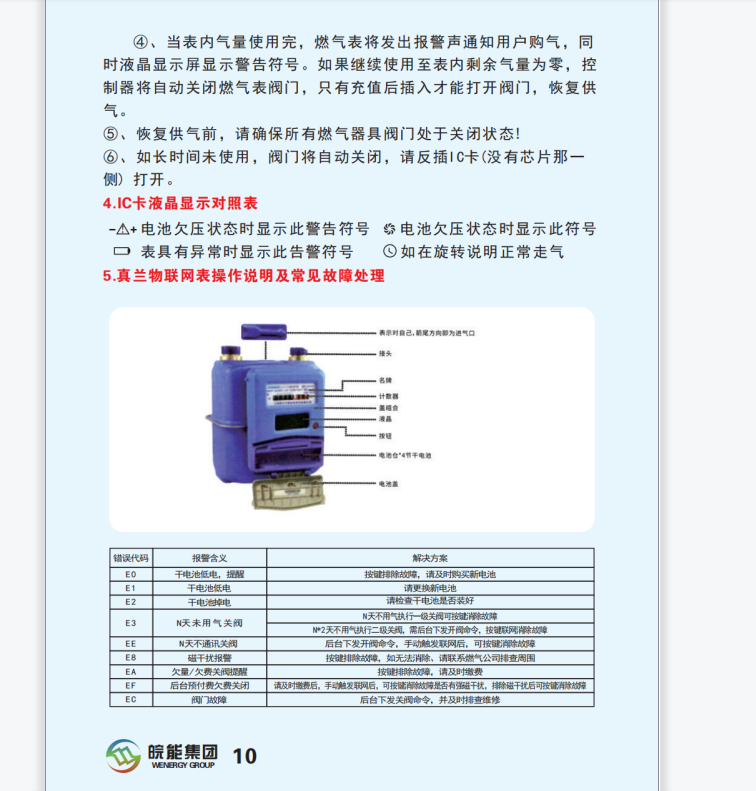 排除方法:更換電池;打開氣閥、檢查膠管,及時購氣