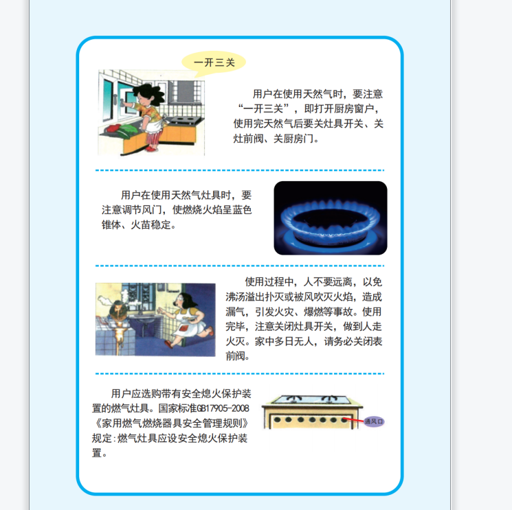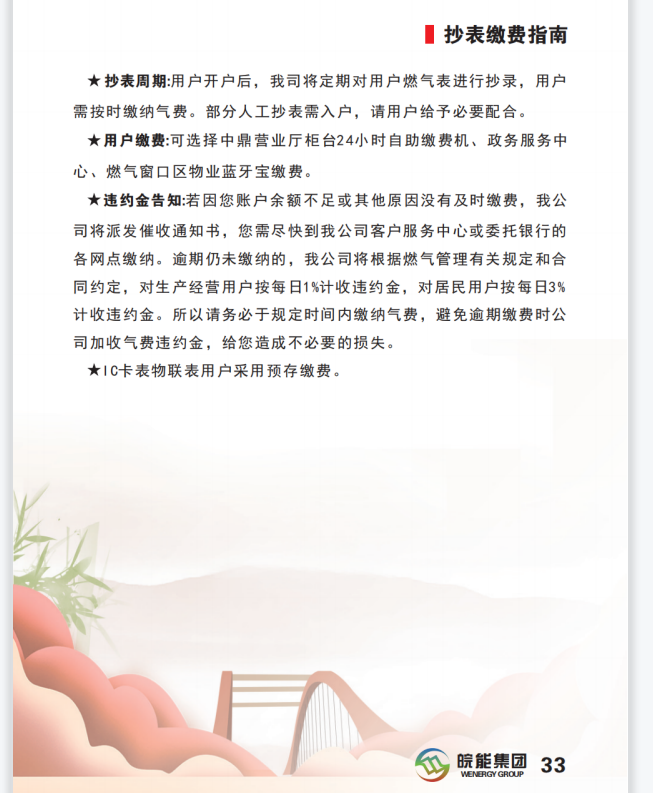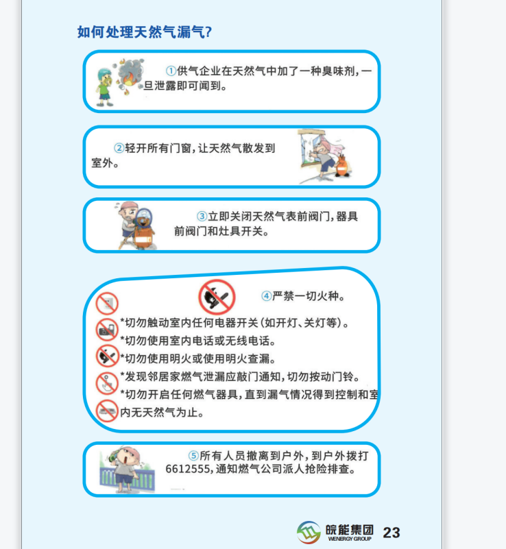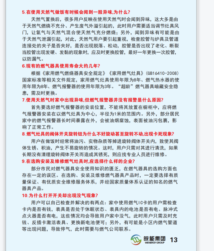 4、停氣預告:因燃氣工程施工、設施檢修等原因,需要降壓或者暫停供氣的,應當提前四十八小時通知燃氣用戶并公告;因不可抗力或者供氣設施搶修等緊急情況,需要降壓或者暫停供氣的,將及時通知燃氣用戶,同時向燃氣管理部門報告。引起停止供氣的原因消除后,將盡快恢復供氣,并在恢復供氣之前及時通知燃氣用戶。恢復供氣為八時至二十時之間進行。