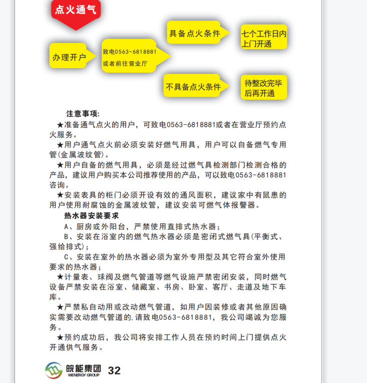 10、營業人員業務受理完畢時,應告知客戶所辦理業務的開通時限和客戶服務熱線電話。并遞上回執和書寫用具告知點火人員聯系方式便于預約,請客戶簽收回執。